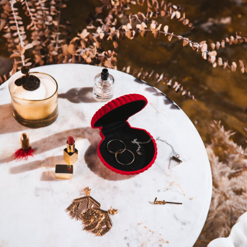 Die samtige Schmuckbox in Muschelform ist perfekt für deine wertvollsten Stücke – wie eine Perle im Meer.