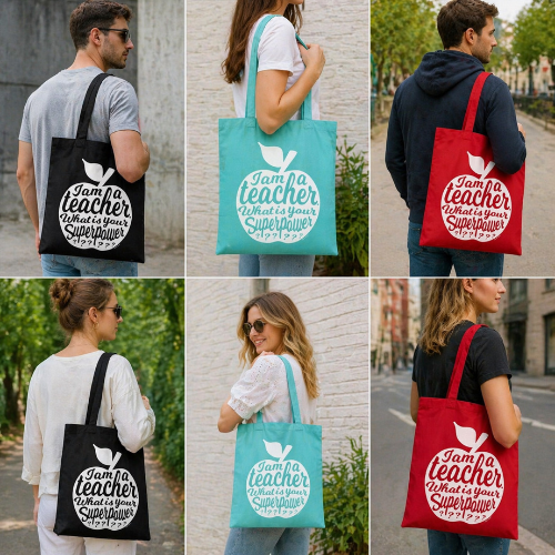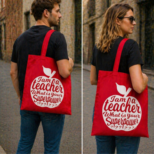 Diese Baumwolltasche ist viel mehr als nur eine Tragetasche – sie ist ein Statement. Mit ihrem charmanten Print „I am a Teacher – What is your Superpower?“ bringt sie auf den Punkt, was Lehrer*innen täglich leisten: Geduld, Wissen und ganz viel Herz.